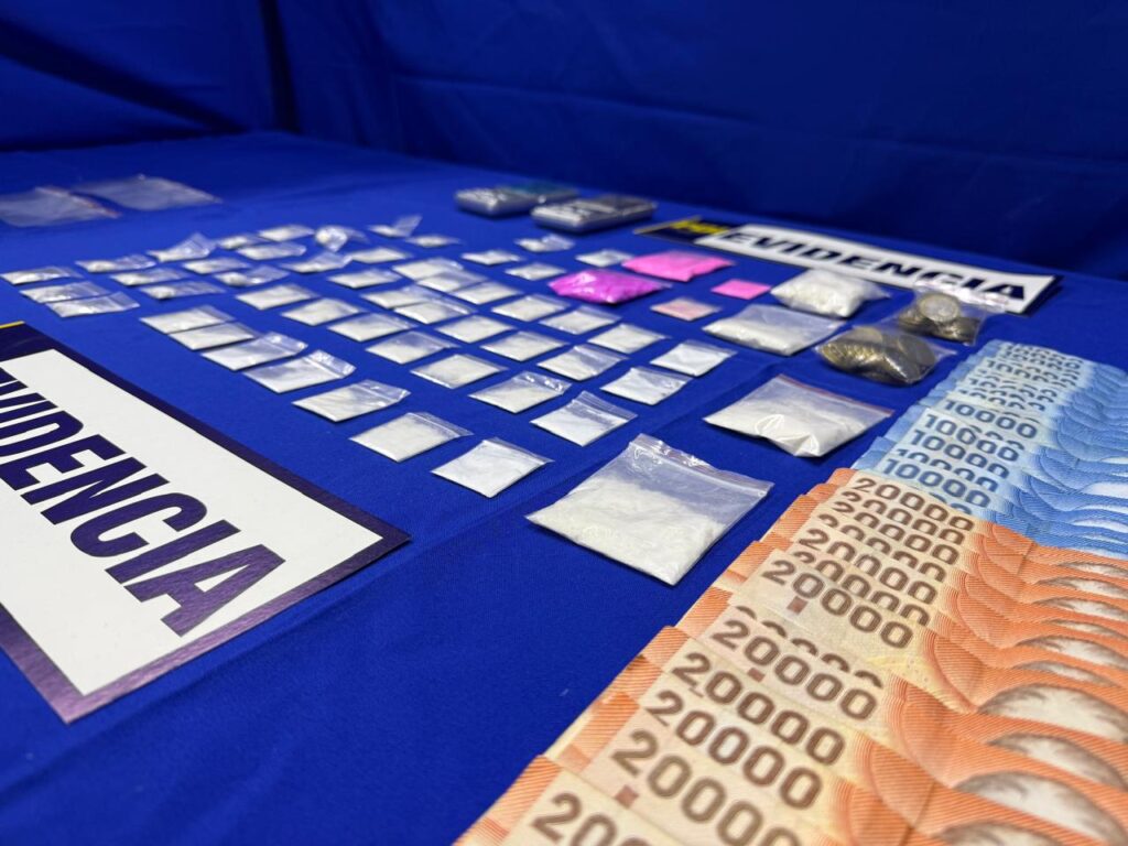 Posteriormente, y en el marco de la continuidad de la investigación, el 13 de marzo detectives realizaron una segunda intervención en un domicilio vinculado a esta red, logrando la detención de un hombre y una mujer, ambos mayores de edad.En total, este procedimiento permitió sacar de circulación 6.900 dosis de cocaína, avaluadas en más de 68 millones de pesos, y 62 dosis de tussi avaluadas en cerca de 500 mil pesos, afectando directamente el mercado ilícito de drogas en la comuna.