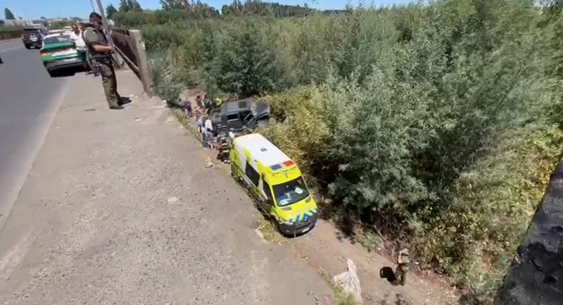 El hecho ocurrió pasadas las 13:00 horas, cuando un jeep Hummer, por razones que son materia de investigación, se desvió de la calzada, impactó las barreras de seguridad y se precipitó al río desde cerca de cinco metros de altura, resultando con severos daños estructurales.